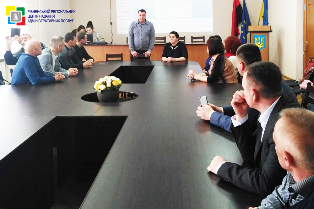 Представники Рівненської та Івано-Франківської обласних адміністрацій, директори ВП Установ "Центр розвитку місцевого самоврядування", голови об'єднаних територіальних громад обговорюють питання щодо актуальних проблем при створенні нових ЦНАПів, організації роботи функціонуючих, адаптації нових послуг, а також, питання щодо програмного забезпечення ЦНАПів.