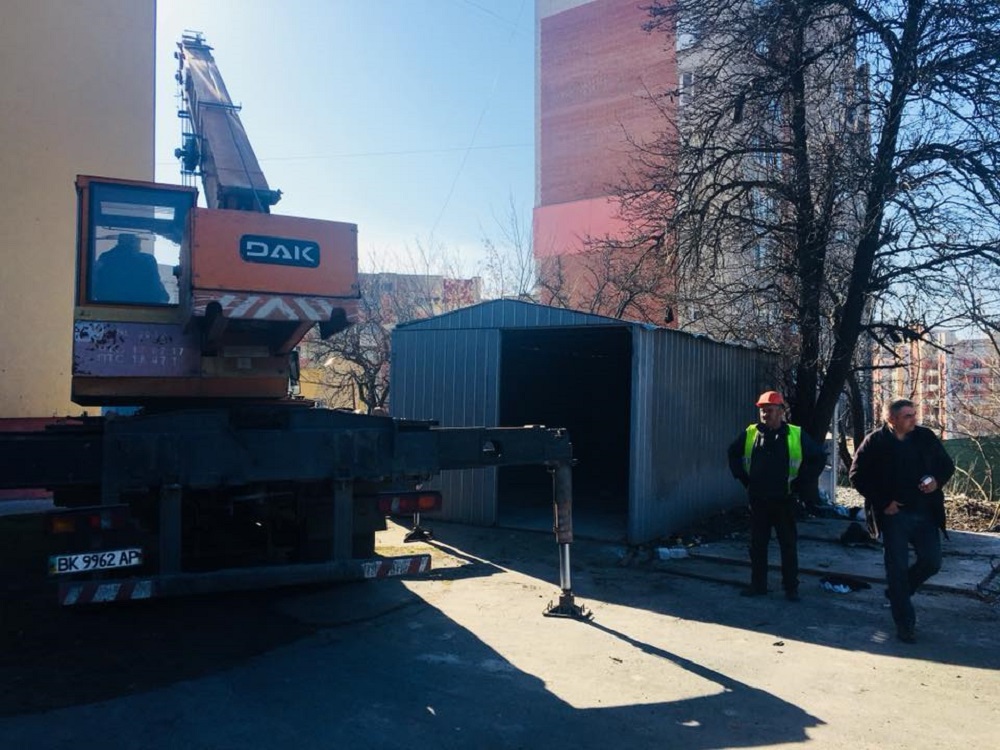 Сьогодні, 4 квітня 2018 року, за дорученням міського голови і на виконання рішення виконавчого комітету Рівненської міської ради комунальники демонтують незаконно встановлені гаражі на вул. Соборній.