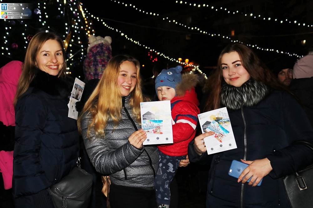 Команда Центру надання адміністративних послуг у місті Рівному під час відкриття новорічної ялинки та проєкту "Різдвяна Казка" в ЗЛАТА ПЛАЗА інформувала громадян щодо вимог та порядку надання адміністративних послуг через ЦНАП міста Рівного.